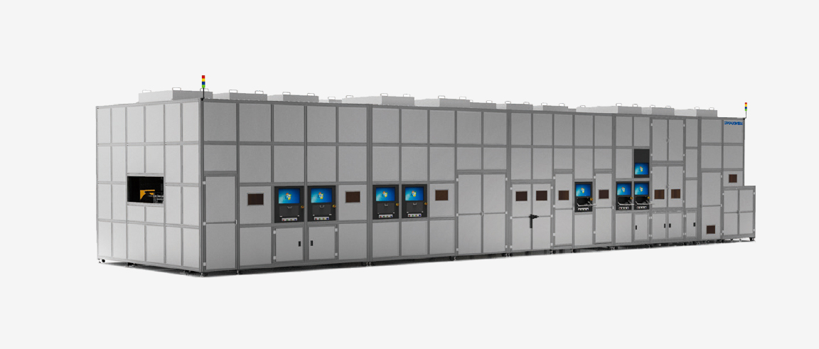 The equipment utilizes laser to cut the entire flexible substrate (maximum size: 1500mm x 925mm) into cells of a specified size & number and then discharge them. The equipment comprises a substrate feeding unit, a laser cutting unit, a waste removal unit, a turntable unit and an unloading unit.